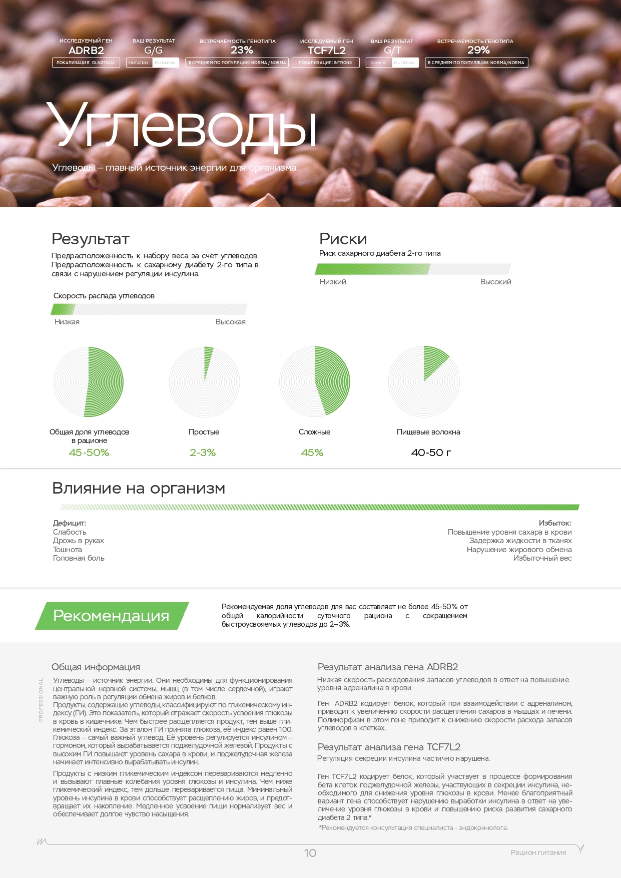 Помните, что помимо физических нагрузок, большую роль играет питание. Вы также можете пройти ДНК-тест на диету, который покажет, каких веществ не хватает в организме, какие организм усваивает лучше, а какие хуже и многое другое.